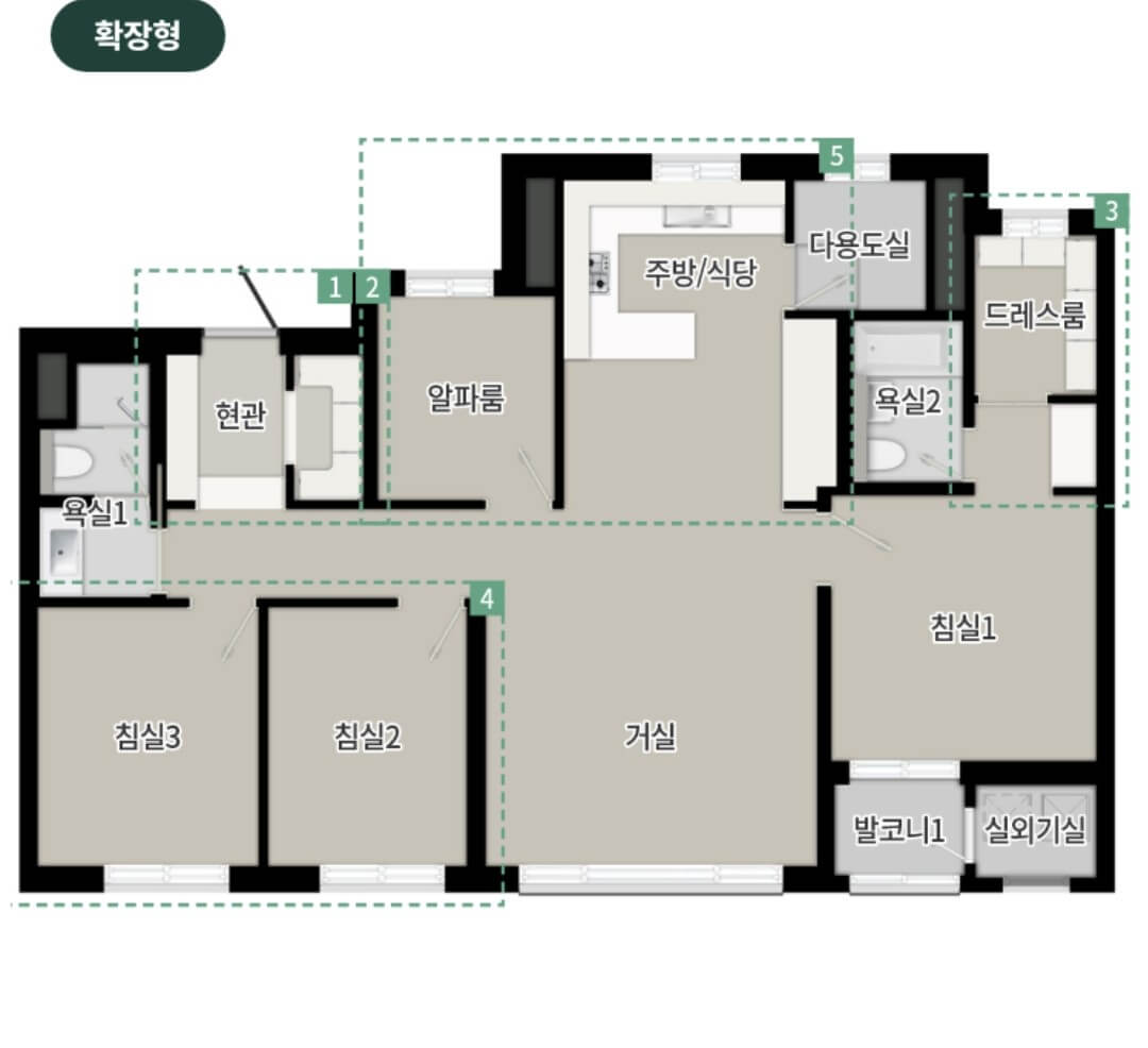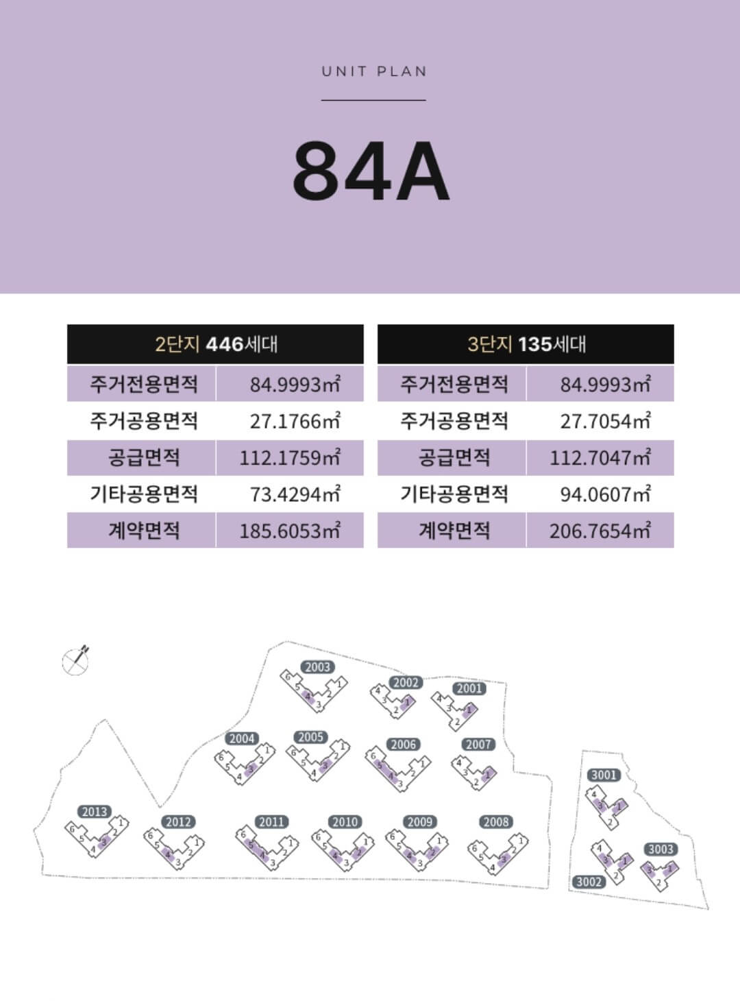 생활공간 내부는 수요자들의 선호도가 높아 국민 평형이라고 불리는 전용 84㎡ 평형과 희소성 높은 134㎡ 평형으로 공급됩니다. 광폭거실 등 특화 평면과 판상형 설계를 통해 개방감을 극대화했으며, 알파룸·팬트리·드레스룸 등 수납 특화설계도 다수 선보입니다.